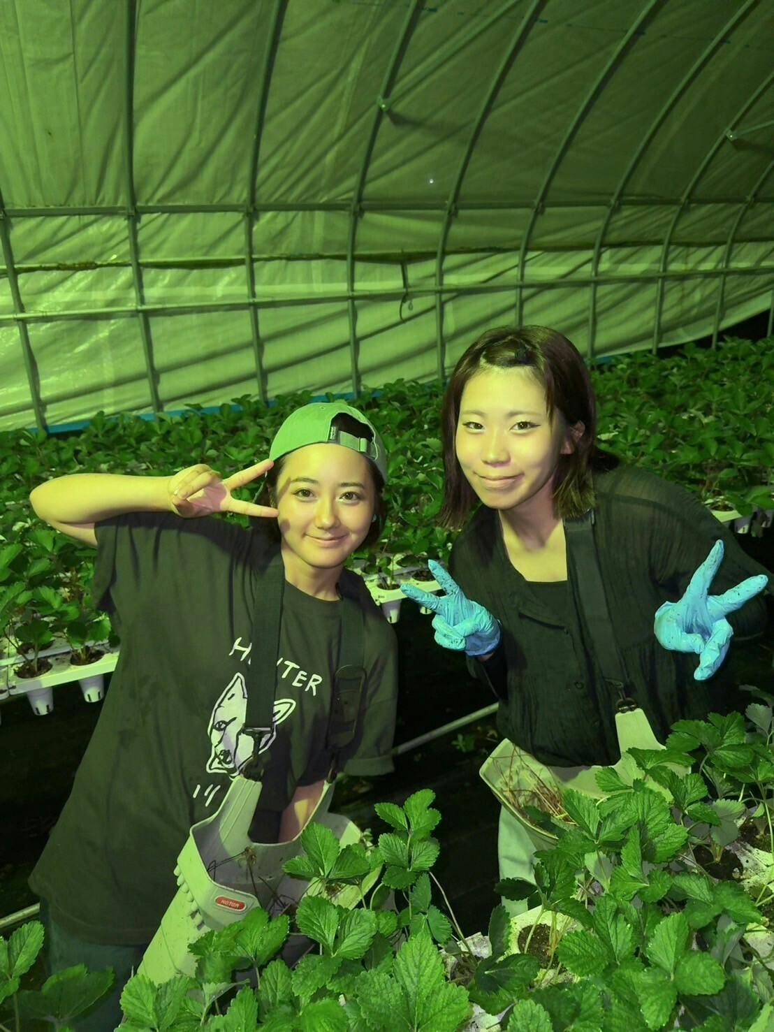 おまけ…農園に戻った後も運営メンバーの彼女たちはいちごの苗に刺さっているランナーピンを抜き取る作業をしていました笑ギャルメイクをして気分上げてるみたいです( ´艸`)元気だなあ笑