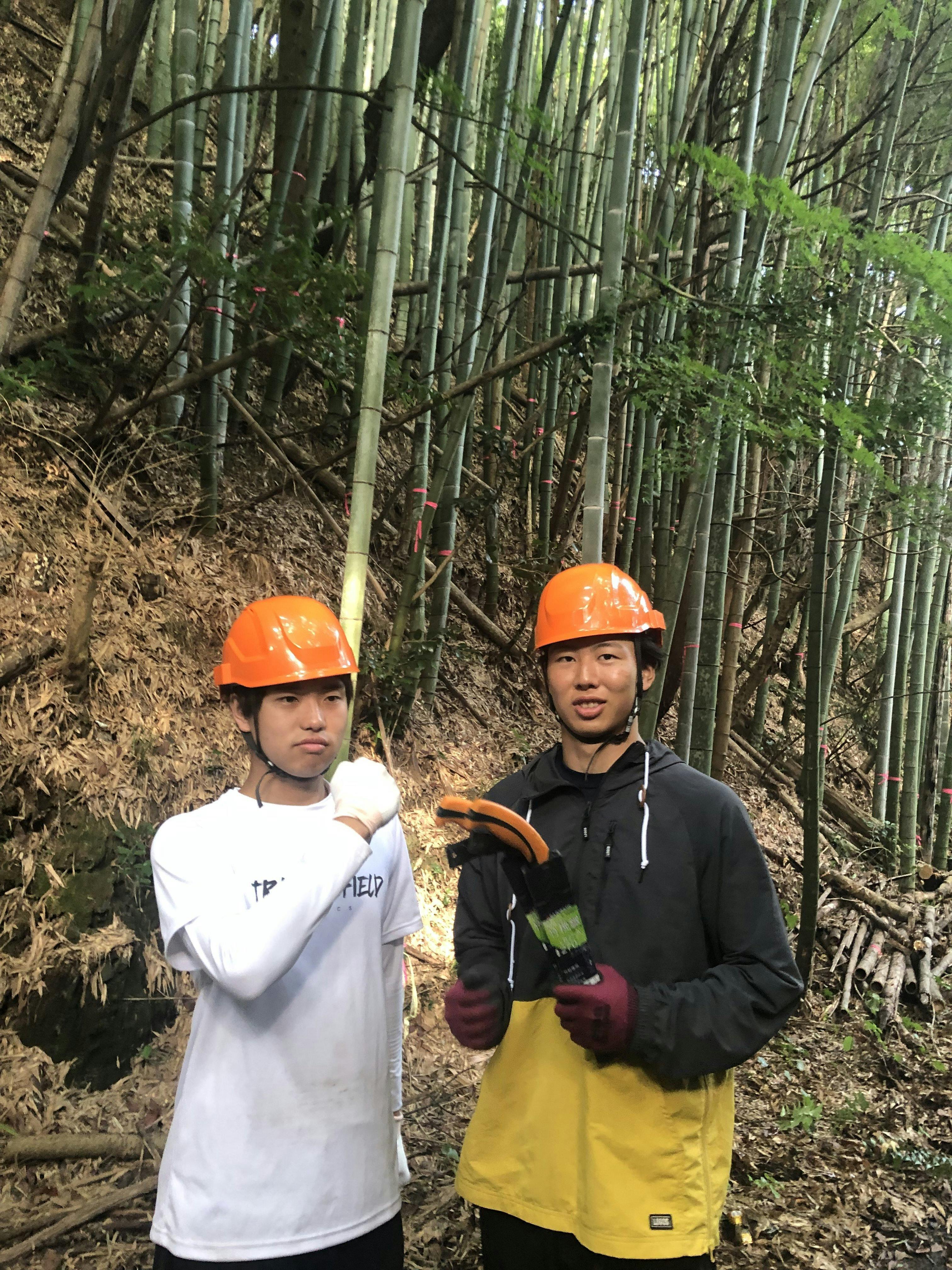 朝は7時から農園の近くにある竹林へ…ここは廿木で株式会社たけふぁむさんが竹林整備をしている場所、古くなった竹を切り倒し、間伐をするお手伝いを少しばかりさせていただきました。